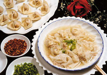餛飩的歷史悠久.各地創(chuàng)造了具有地方風(fēng)味特色的品種。經(jīng)歷代發(fā)展和改進,成為當(dāng)代小巧玲瓏的形狀。貴陽人喻亮卿于本世紀(jì)20年代創(chuàng)制的沓臊餛飩,用料阱究,,工藝精細,風(fēng)味獨特,一鳴驚人,在同行中如鶴立雞群,贏得了貴陽人民的一致贊賞。